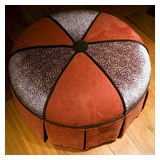 Custom designed ottoman for a women's dressing room. Solid Red and Black Suede accented with Animal Print. |