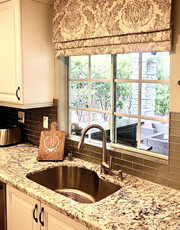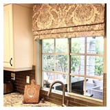 A plain kitchen sink window turns into MAGIC using a soft roman valance. Popular choice for any window! |
