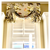 The charming "London" valance was custom designed for a kitchen and butler's pantry. Sits perfectly over a shutter. |